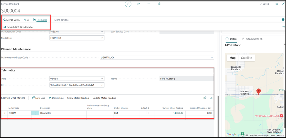 • Enhanced Visibility – View live telematics data through dedicated FactBoxes on the Fixed Asset Card, providing instant access to GPS location, odometer readings, and engine hour metrics.